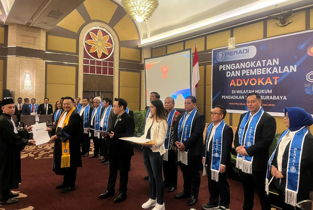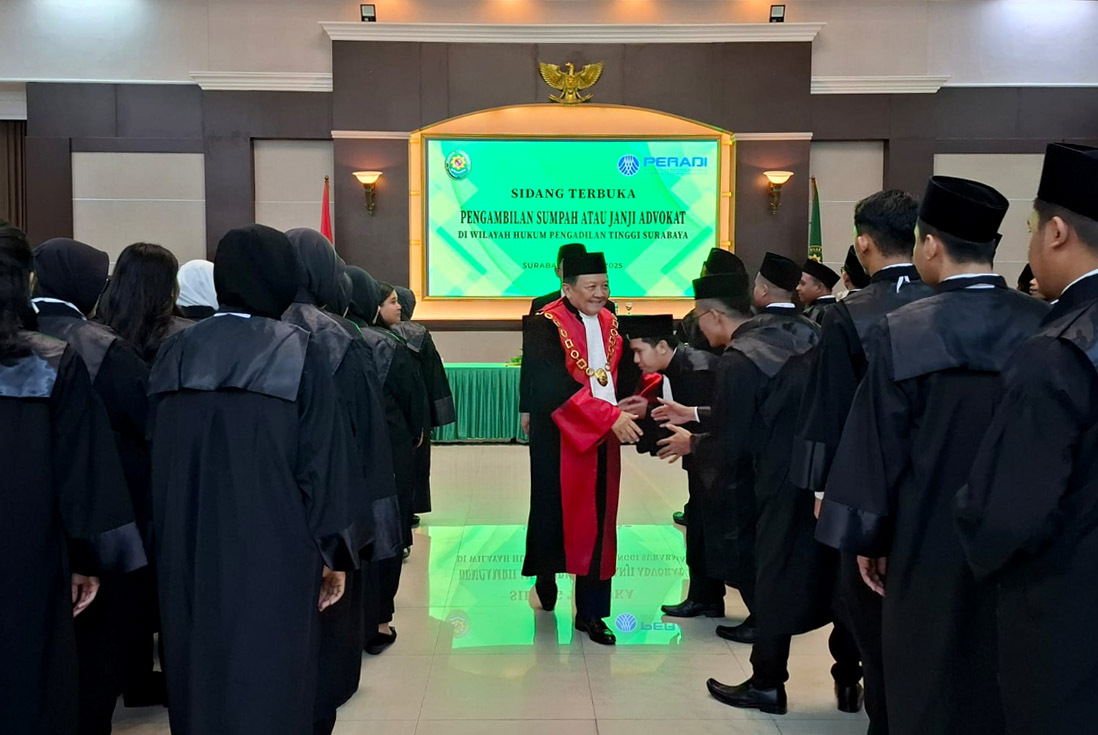 DPC PERADI Surabaya mengadakan acara Pengangkatan dan Pembekalan Advokat di Wilayah Hukum Pengadilan Tinggi Jawa Timur yang diikuti 437 peserta.