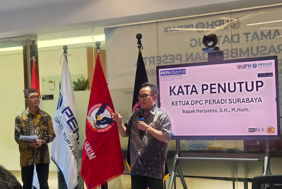 DPC PERADI Surabaya memberikan pembekalan pada lulusan Program Studi Hukum Universitas Pelita Harapan (UPH) Surabaya